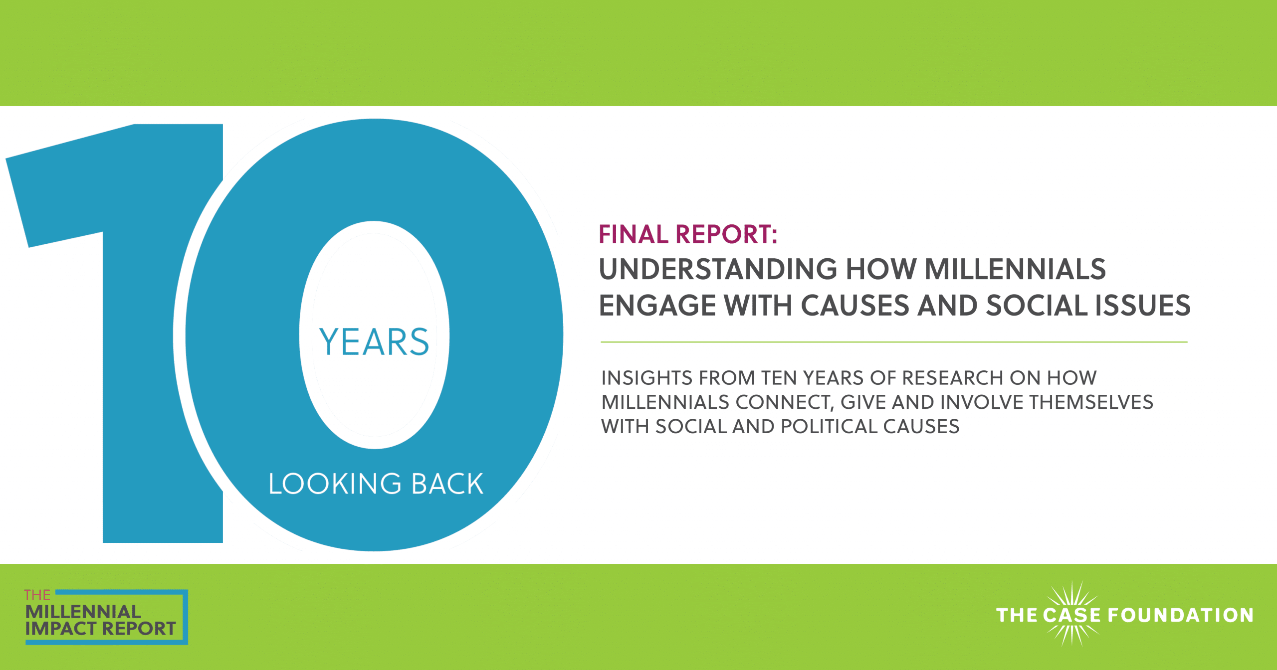 Achieve, with the help of their sponsor the Case Foundation, has released its final Millennial Impact Report: 10 Years Looking Back which shares insights into over a decade of research.