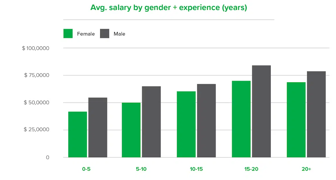 According to Bloomerang’s recent research of over 1100 people working in the nonprofit sector, women make less than men, in every level of experience, whether they have one year of experience, or twenty years of experience.