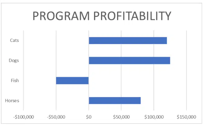 How might this program profitability graph help an organization determine whether to use across-the-board cuts to balance the budget?